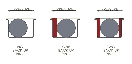 ในงานซีล, BACKUP RING ช่วยเพิ่มความต้านทานต่อการอัดรีดและป้องกันความเสียหายต่อโอริงและซีลเมื่อต้องเผชิญกับแรงดันสูง, ช่องว่างการอัดรีดที่ใหญ่ขึ้น และ/หรือ อุณหภูมิสูง ความเสียหายจากการอัดรีดเป็นหนึ่งในประเภทความเสียหายของโอริงที่พบบ่อยที่สุด เมื่อแรงดันภายในของงานมากเกินไป โอริงจะอัดรีดเข้าไปในช่องว่าง ซึ่งส่วนที่ยื่นออกมานี้จะถูกกัดกินอย่างรวดเร็ว ทำให้สูญเสียวัสดุ และเมื่อสูญเสียวัสดุเพียงพอ การซีลจะล้มเหลวตามมาอย่างรวดเร็ว มีสามทางเลือกในการป้องกันสิ่งนี้ ทางเลือกแรกคือการลดช่องว่างเพื่อลดช่องว่างการอัดรีด ซึ่งเป็นทางเลือกที่มีค่าใช้จ่ายสูง ดังนั้น วิธีแก้ปัญหาที่ถูกกว่าคือการเพิ่มความแข็งของโอริง แม้ว่าโอริงที่มีความแข็งสูงกว่าจะมีความต้านทานต่อการอัดรีดที่เหนือกว่า แต่ก็มักจะไม่ใช่วิธีแก้ปัญหาที่เป็นไปได้เนื่องจากความพร้อมของวัสดุ และข้อเท็จจริงที่ว่าวัสดุที่มีความแข็งสูงกว่ามีความสามารถในการซีลแรงดันต่ำที่จำกัด ทางเลือกสุดท้ายและดีที่สุดคือการเพิ่ม BACKUP RING