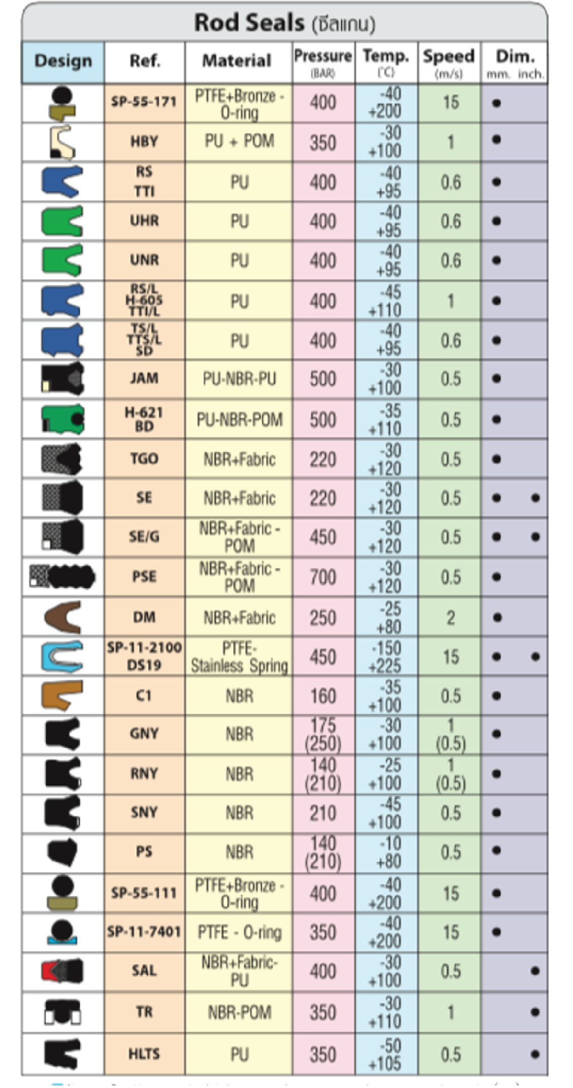 โดยซีลเหล่านี้ผลิตจากวัสดุคุณภาพสูง ทั้งกลุ่มอีลาสโตเมอร์ประสิทธิภาพสูง (High-Performance Elastomers) และพลาสติกวิศวกรรม (Engineering Plastics) เพื่อให้มั่นใจได้ถึงความทนทานและประสิทธิภาพการซีลสูงสุด