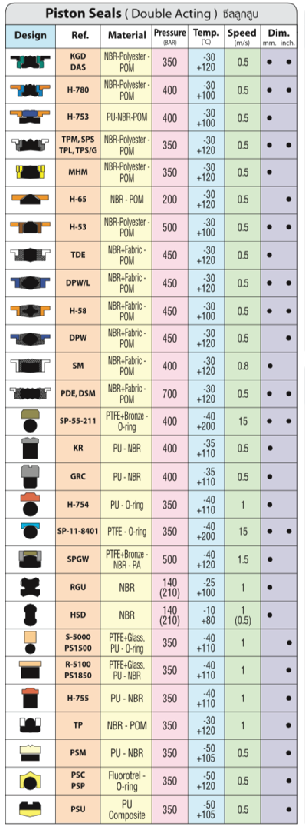 Piston seals, both single and double-acting, can be designed for and used with integrated or separate back-up rings and guide rings.
