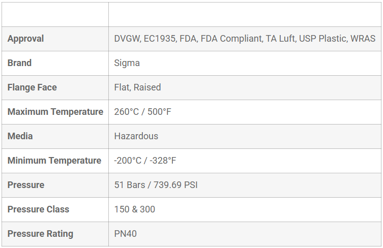 รองรับการใช้งานในสภาวะอุณหภูมิติดลบสุดขั้วไปจนถึงอุณหภูมิสูงได้อย่างน่าทึ่ง ตั้งแต่ 200°C ถึง 260°C (328°F ถึง 500°F) ทำให้ Sigma® 500 เป็นตัวเลือกเดียวที่จบได้ในหลากหลายแอปพลิเคชัน ตั้งแต่งาน Cryogenic ไปจนถึง Steam and Thermal Fluid.