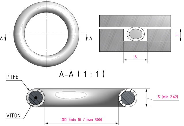 Designed to be a gasket seal, as opposed to an 'O'-Ring. In particular, the rectangular cross-section is designed to be a universal fit, non-contaminating Kamlock™ hose coupling seal. It eliminates the need to specify different elastomers for different applications and stops coupling leakage due to chemical attack or creep of a solid PTFE gasket seal.