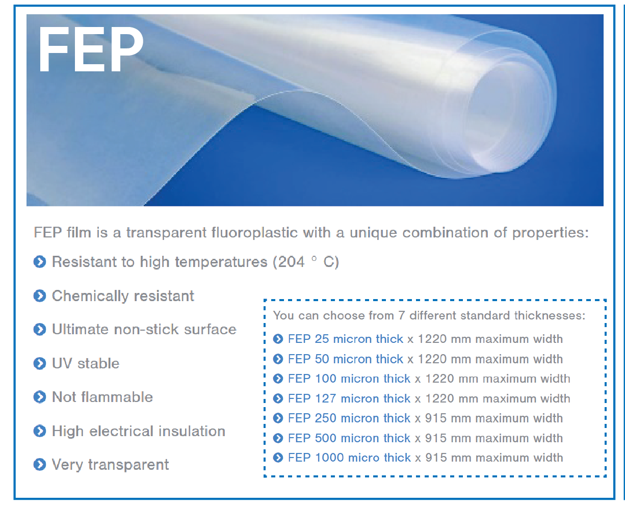 FEP film is a transparent fluoroplastic with a unique combination of properties: