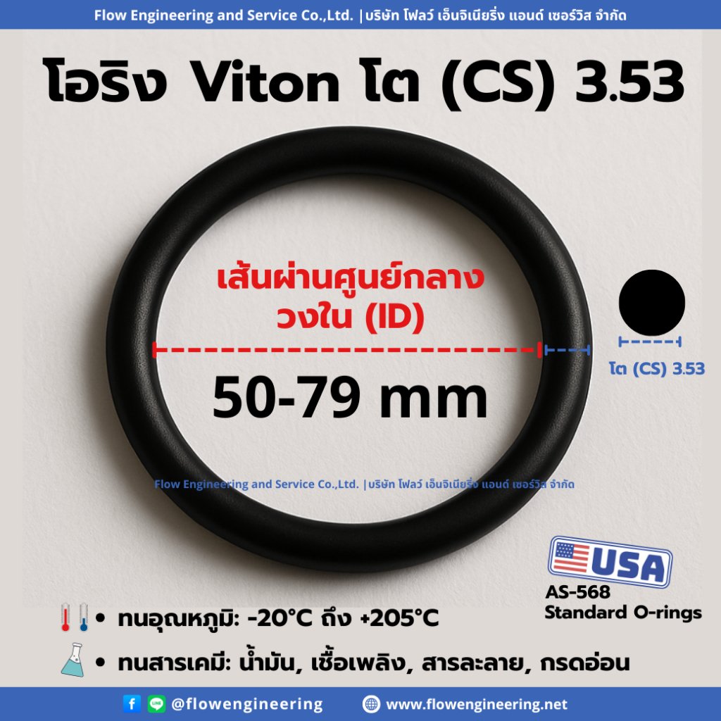 โอริง AS Standard Viton โต 3.53 mm | O-Ring V75 | ทนน้ำมัน ทนความร้อน | เลือกขนาด ID 50-79 mm ในตัวเลือก