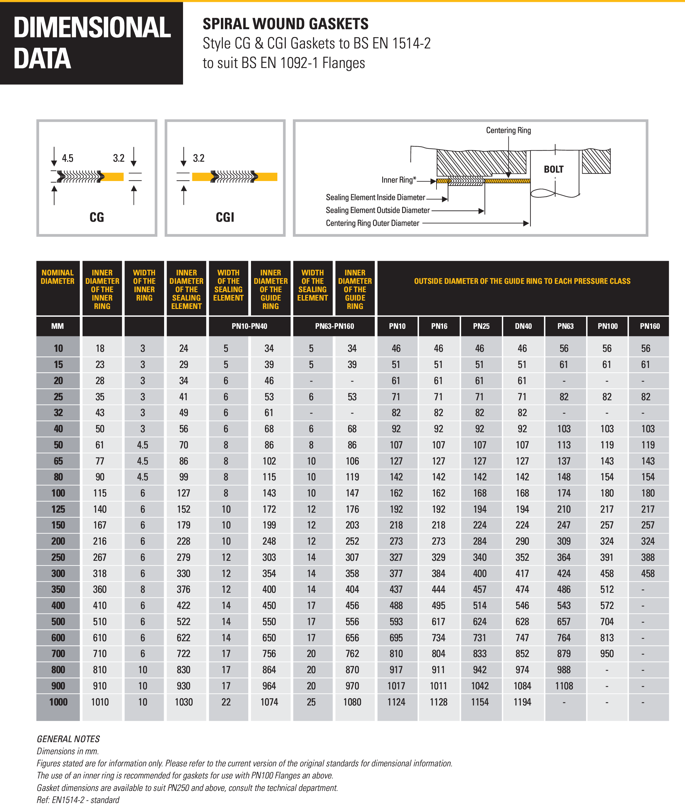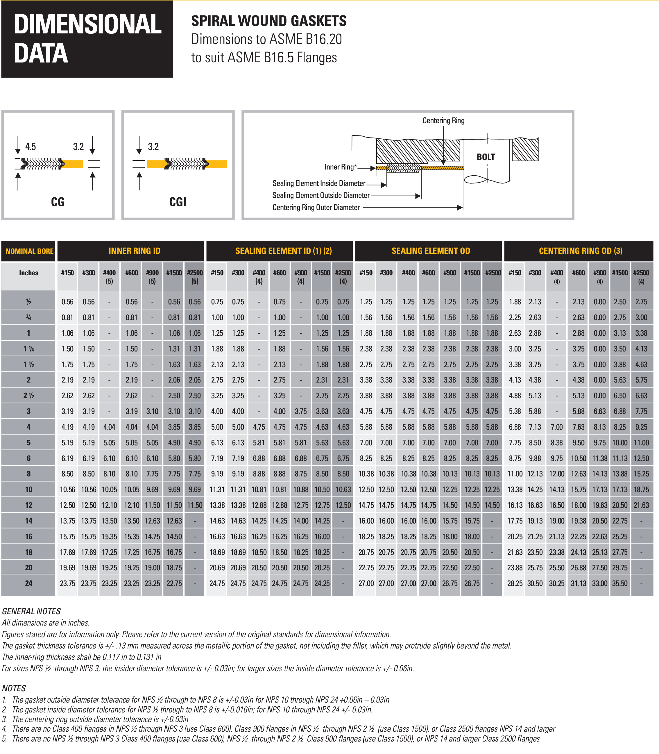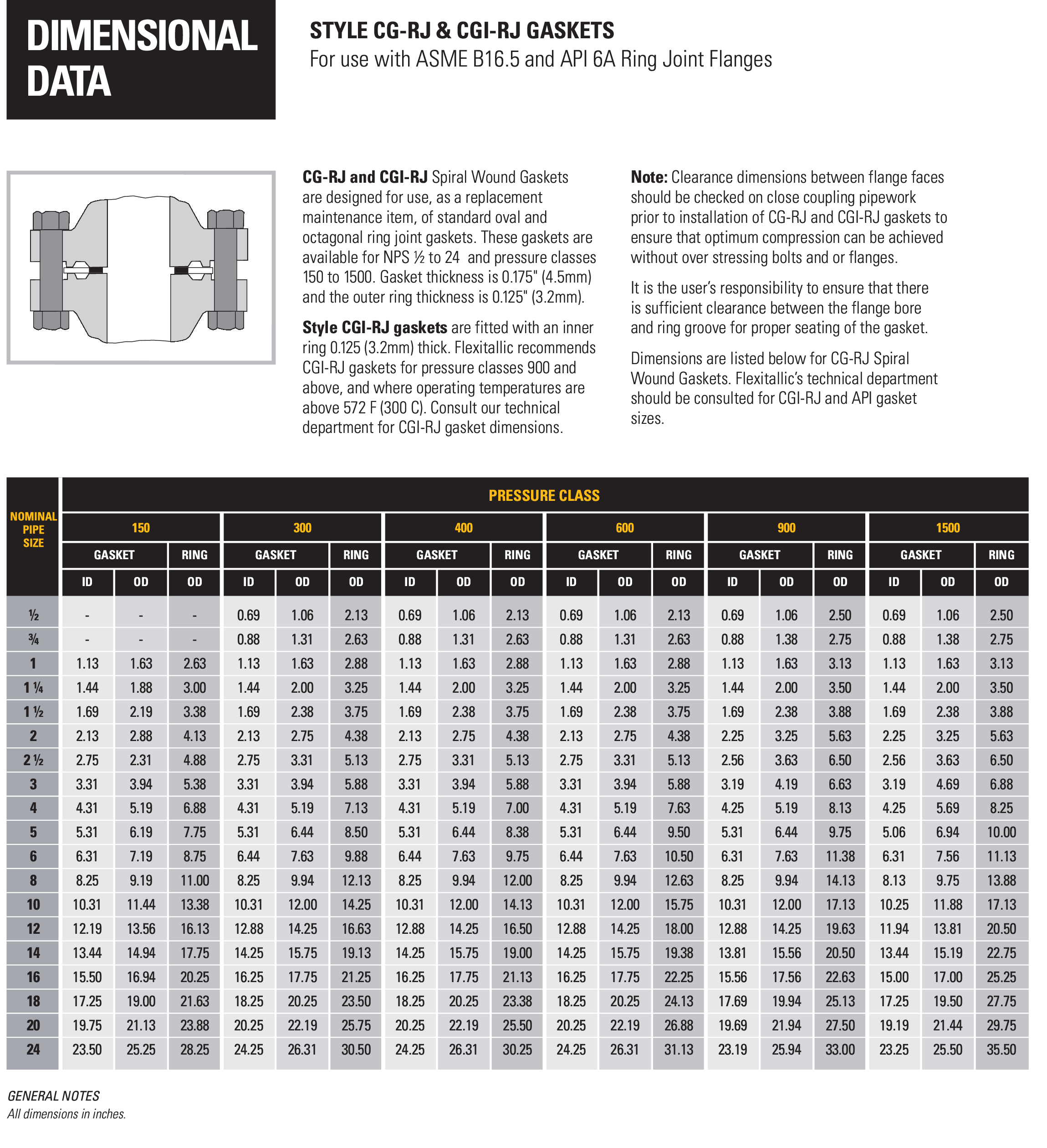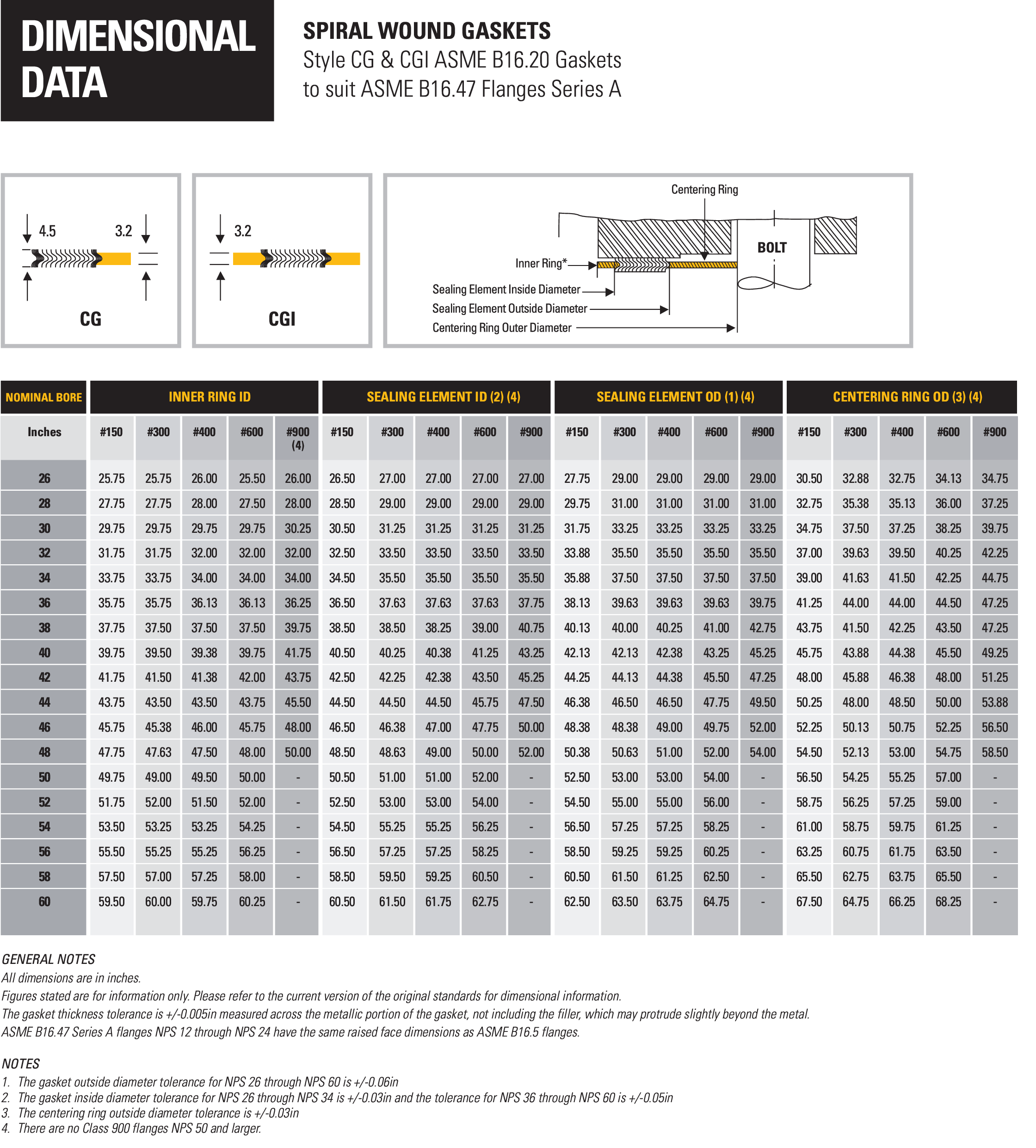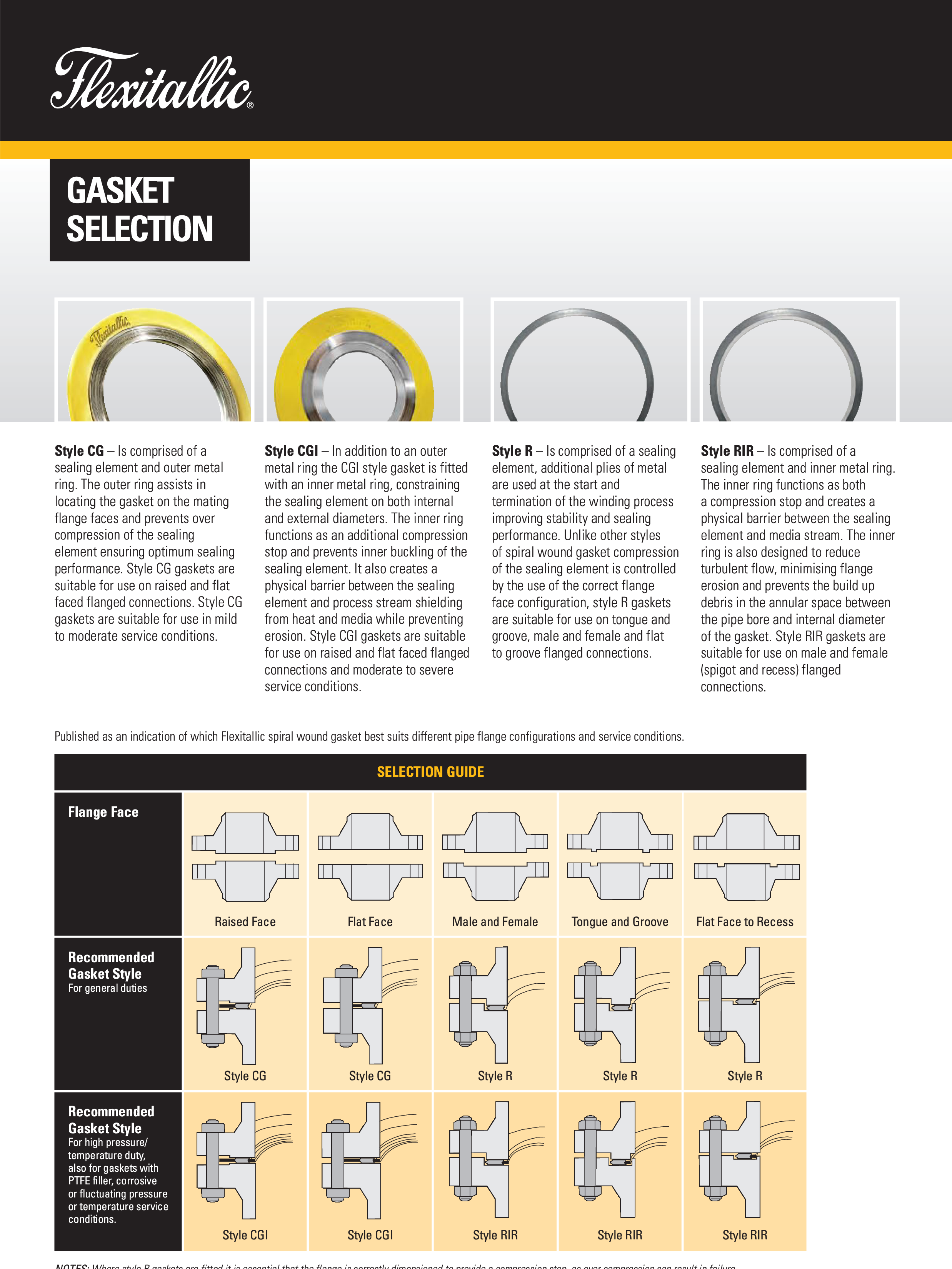 ปะเก็น Spiral Wound รุ่น Style CG ไส้กราไฟต์ปะเก็นรุ่นนี้เป็นปะเก็นโลหะ(Spiral Wound) ที่มีวงแหวนอยู่ด้านนอก (External Ring) ซึ่งมีหน้าที่สำคัญในการจัดตำแหน่งปะเก็นให้อยู่กึ่งกลางหน้าแปลนอย่างแม่นยำ ไส้ในของปะเก็นทำจากวัสดุกราไฟต์ชนิดยืดหยุ่น (Flexible Graphite)จุดเด่นของปะเก็น Style CG คือการออกแบบที่ช่วยเพิ่มความแข็งแรงในแนวรัศมี(radial) ทำให้ทนทานและป้องกันการแตกเสียหาย (Gasket Blowout) ได้ดี นอกจากนี้ วงแหวนภายนอกยังทำหน้าที่เป็นตัวจำกัดแรงอัด (Compression Stop) ทำให้มั่นใจได้ว่าปะเก็นจะไม่เสียหายจากการขันที่แน่นเกินไปการนำไปใช้งาน ปะเก็นรุ่นนี้เหมาะสำหรับงานอุตสาหกรรมทั่วไป และสามารถใช้ได้กับหน้าแปลนทั้งชนิดหน้าเรียบ (Flat Face) และชนิดหน้ายก (Raised Face)